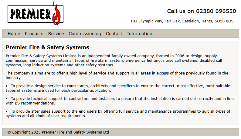 Premier Fire & Safety Systems Limited is an independent family owned company, formed in 2006 to design, supply, commission, service and maintain all types of fire alarm system, emergency lighting, nurse call systems, disabled call systems, loop induction systems and other safety systems.