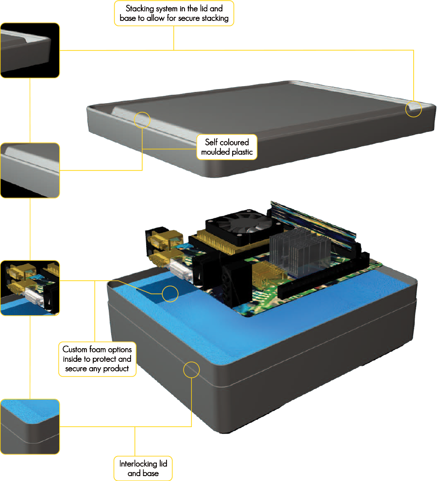 Bespoke internal foam fitments can be designed and fitted and containers can be labelled or printed with required information.