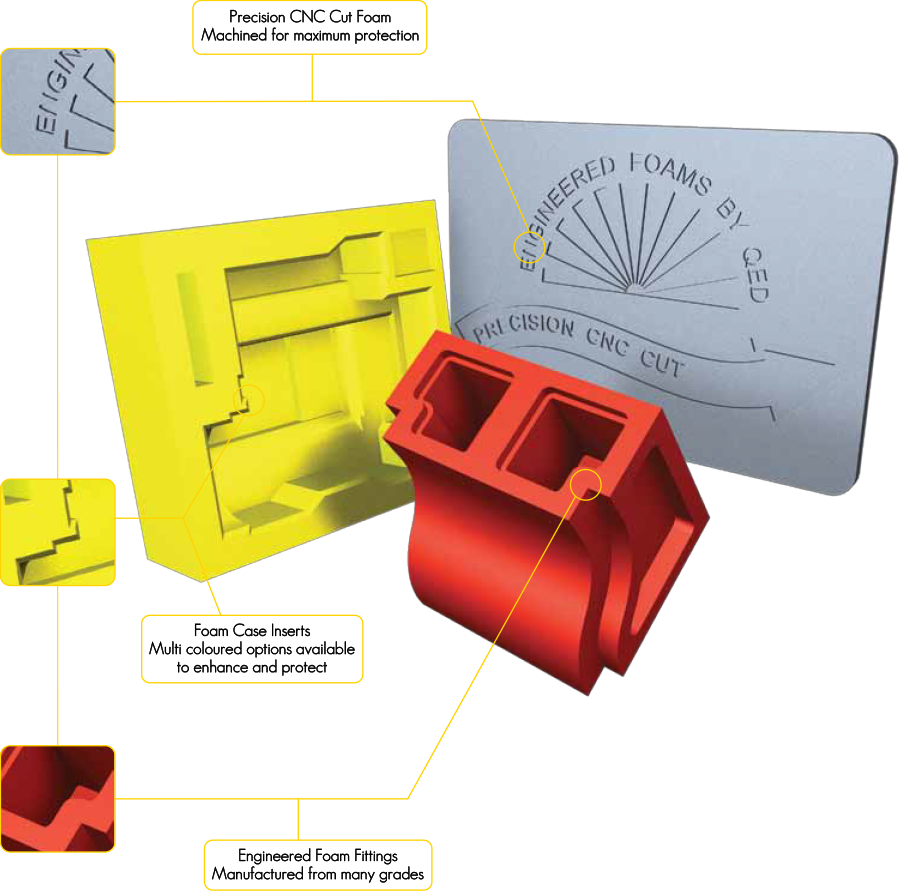 QED offer a full design and manufacture solution for the supply of shaped foam inserts either from detailed specifications, or the loan of the items to be packed. Alternatively “Pick & Pluck” foam sets are available, which can be easily shaped to suit individual needs.