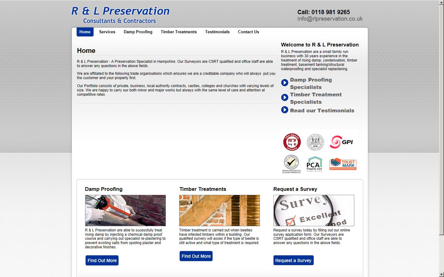 R & L Preservation are baed in Hampshire and specialise in Rising Damp Treatments, Condensation Treatments, Penetrating Damp, Specialist Platering, Basement Tanking and Timber Treatment.