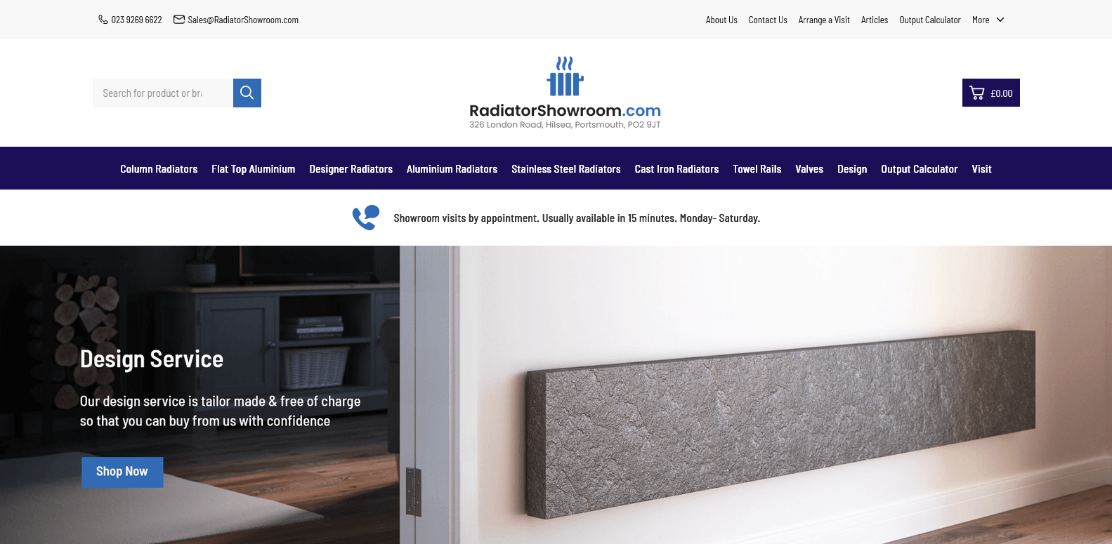 Our showroom features over 100 distinct designer radiators and is conveniently situated within a one-hour drive from London, easily accessible from Dorset and West Sussex. The showroom is also within reach of Southampton and Chichester, our closest neighbouring towns.