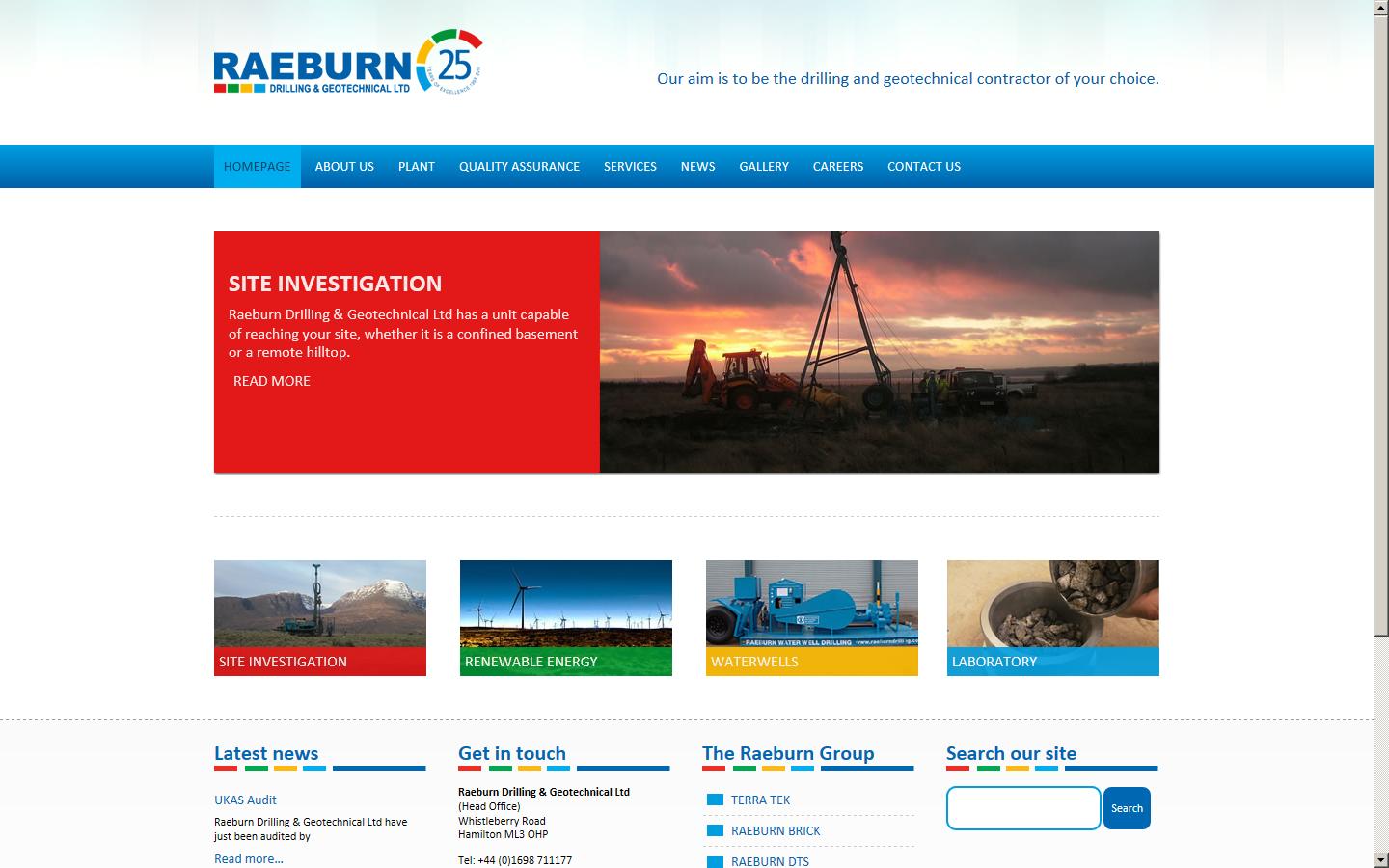 Raeburn Drilling & Geotechnical Ltd (RDG) is based in Central Scotland with offices located strategically throughout the UK in Aberdeen, Glasgow, London and Birmingham. Since the inception of the business in 1985, RDG has grown significantly through acquisition, innovation and investment in long-term Client relationships. RDG is a highly successful award-winning Company capable of delivering high quality multimillion-pound Ground Investigation projects within programme, safely and to budget.