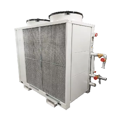 Our 75kW packaged chiller is aircooled with scroll compressors and coaxial evaporator.