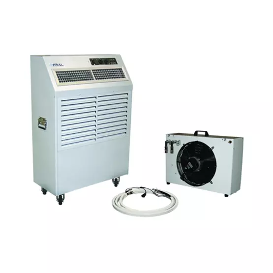 This portable AC comes with an external unit, which can be positioned up to 30m away from the main unit thanks to glycol fast connecting umbilical lines.