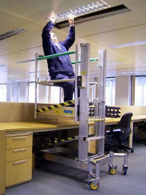 How do I safely gain access to lighting and roofing above desks? The answer is not necessarily simple as traditional mobile tower equipment and low level work platforms require floor space which is not always practical.