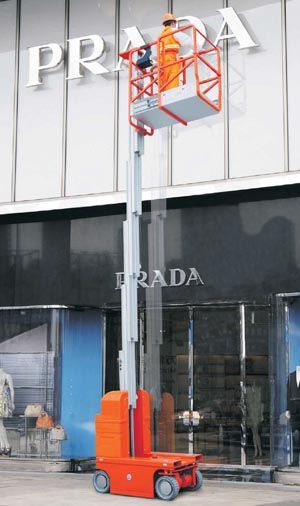This battery powered access platform features a powered vertical mast mounted on a wheeled push-around base.Outriggers give the AWP 20S stability; this access platform is compact and eco-friendly for indoor use.