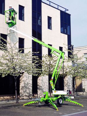 This narrow access cherry picker from Easylift has a compact and lightweight chassis with a stowed width of less than 1 metre. The bi-fuel petrol engine and non-marking tyres make the Ragno R-160 well suited to a range of maintenance work.