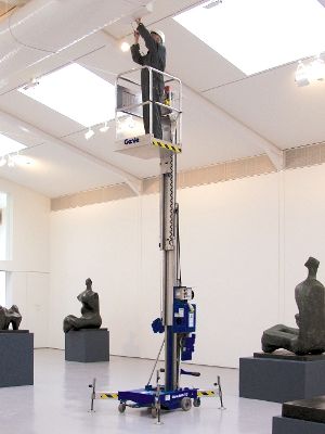 The narrow AWP 25S Genie Lift is a powered personnel lift with a working height of 9.5 metres.
