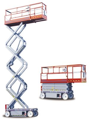 SJ-3219 battery powered access platforms are clean and fuel efficient with solid non-marking tyres. Drivable at full height, the SkyJack scissor lift has a variable speed and front wheel hydraulic drive. The machine also has fully proportional controls for improved manoeuvrability.