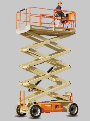 Offering a working height of just over 12 metres, this JLG scissor lift has a large work platform with extending deck. Whilst being a rough terrain MEWP, the 3369 powered access platform is also suitable for indoor work at height with non-marking tyres and proportional controls. Hydraulic Levelling outriggers provide added stability.