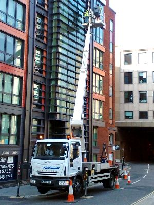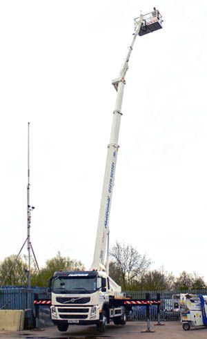 This hire cherry picker is available to rent with a trained and experienced IPAF MEWP operator.With a G.V.W. of only 18 tonnes yet a working height of 38m and an outreach of 26m this highly versatile truckmount has all the features that form a perfect work platform.