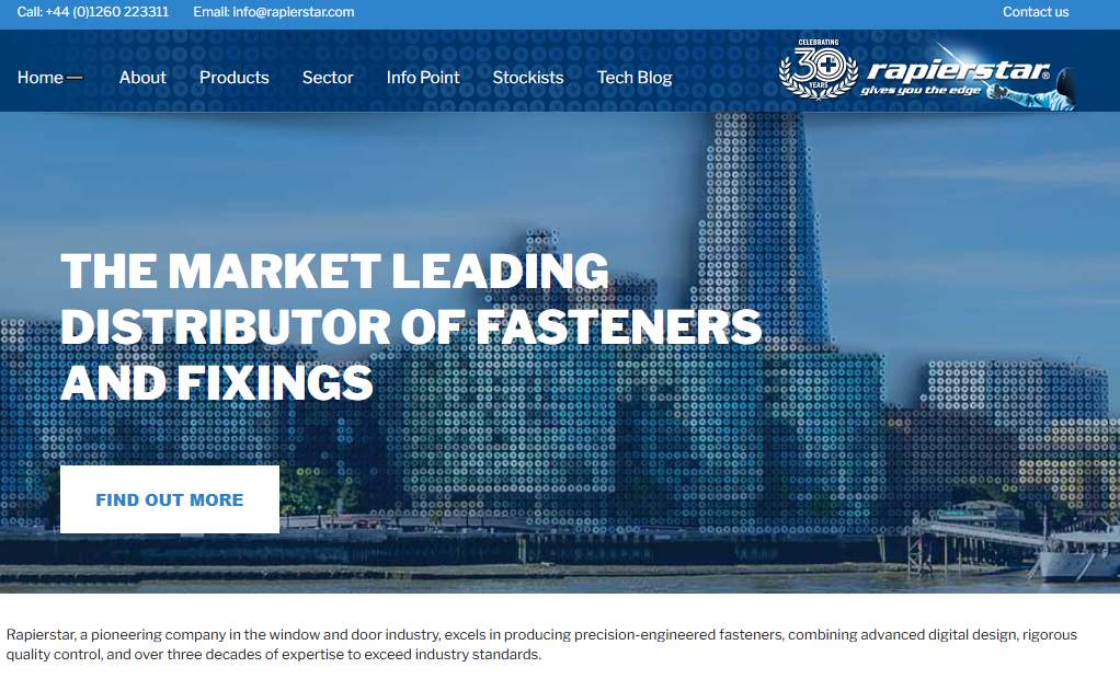 Rapierstar® award winning specialist screws and fasteners include StarPVCU Carbon Steel and corrosion resistant Stainless Steel window screws - StarFix masonry/concrete screw with no plug required - StarTurn universal wood screw - StarDeck specially developed exterior decking and timber screw - StarPin stainless steel polymer headed pins & nails and StarLok heavy duty wood screws.