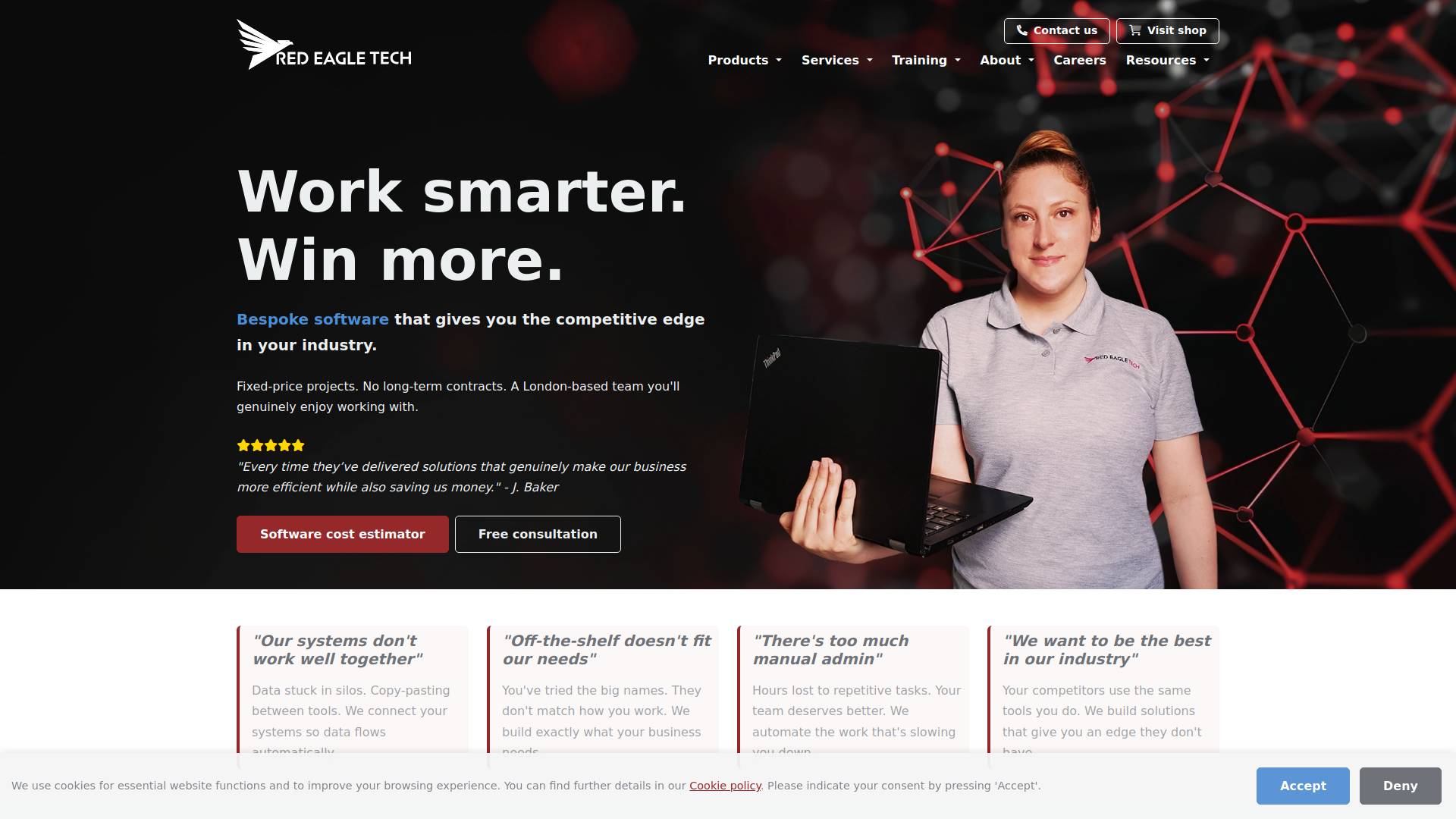 Red Eagle Tech is a London-based technology consultancy helping small and medium-sized businesses design, build and run systems that actually support how they work. We specialise in managed IT operations, bespoke software development, automation and AI-enabled solutions, working closely with clients who have outgrown off-the-shelf tools or fragmented tech stacks.
