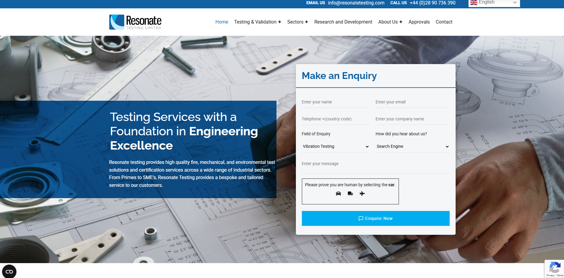 Resonate testing provides high quality fire, mechanical, and environmental test solutions and certification services across a wide range of industrial sectors. From Primes to SME’s, Resonate Testing provides a bespoke and tailored service to our customers.