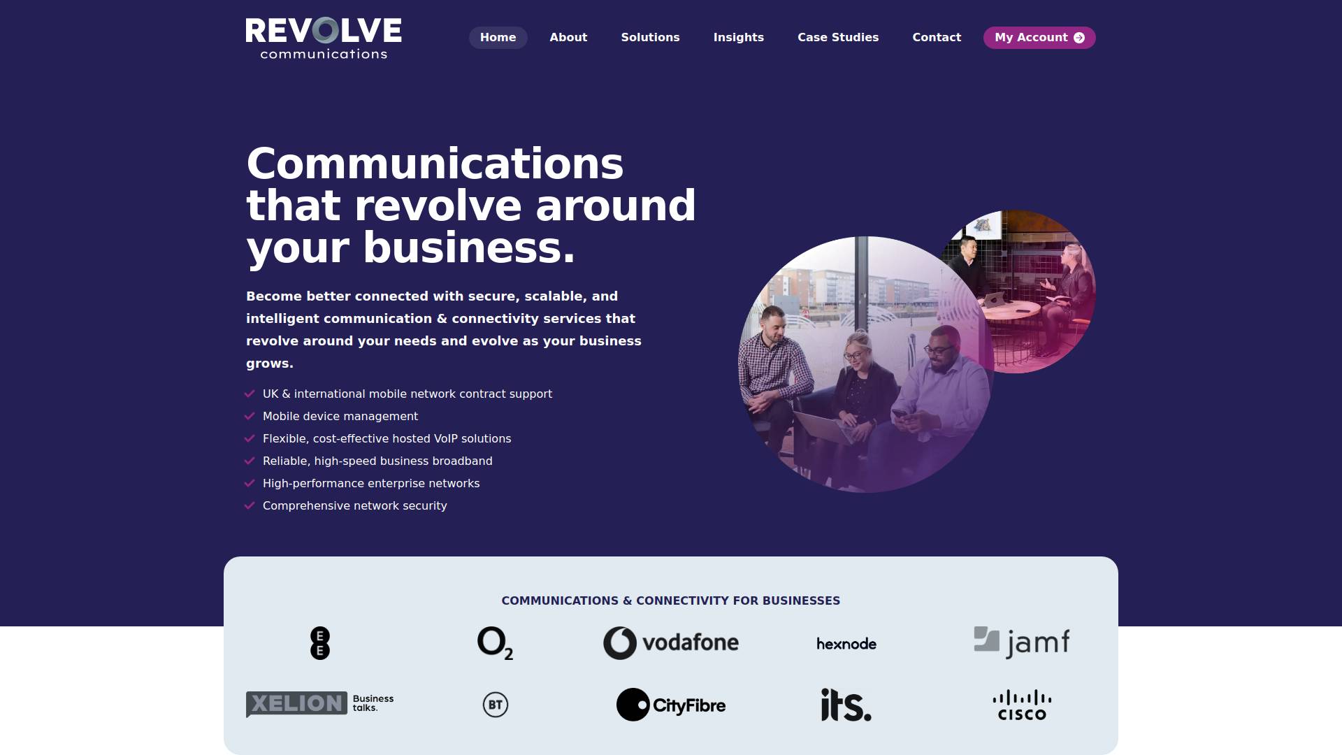 Business Mobile & Network Management — Revolve Communications works with all major UK mobile networks, including EE, Vodafone, and O2, as well as a range of international networks. The company conducts in-depth audits of clients' existing mobile contracts, hardware, and usage patterns, then recommends and manages optimised solutions. Every client benefits from a dedicated account manager, removing the need to deal with network call centres and ensuring ongoing, personalised support. This approach consistently delivers significant cost savings for clients — in some cases tens of thousands of pounds annually.