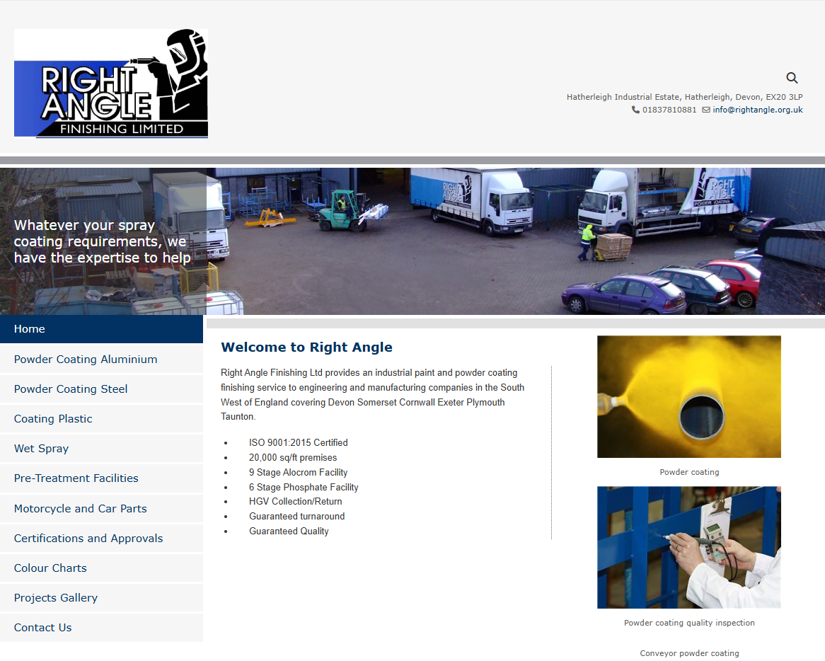 Right Angle Finishing Ltd provides an industrial paint and powder coating finishing service to engineering and manufacturing companies in the South West of England covering Devon Somerset Cornwall Exeter Plymouth Taunton.