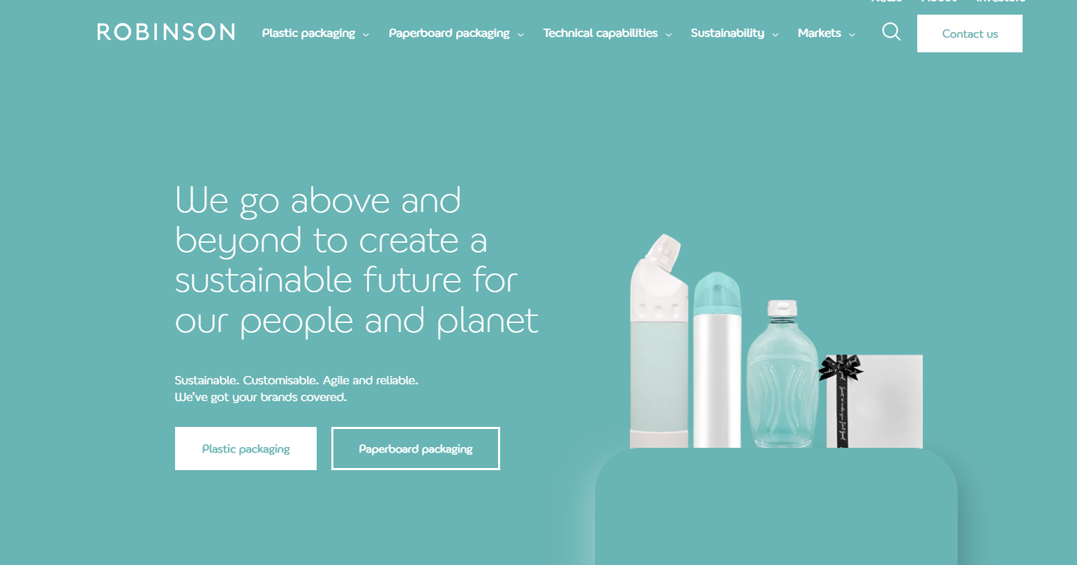 Robinson plc is an AIM-listed manufacturer specialising in custom packaging with technical and value-added solutions for food and consumer product hygiene, safety, protection, and convenience. Our purpose is to go above and beyond to create a sustainable future for our people and our planet. We are committed to delivering packaging to achieve our purpose.