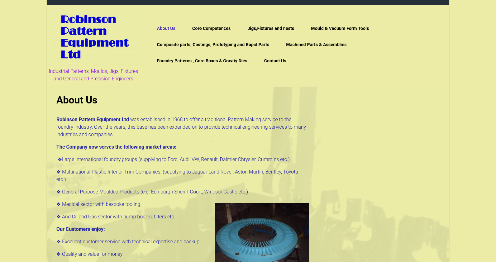 Robinson Pattern Equipment Ltd has 45 years of experience in traditional pattern making, providing a comprehensive service to the foundry industry, as well as technical engineering services to all sorts of businesses.