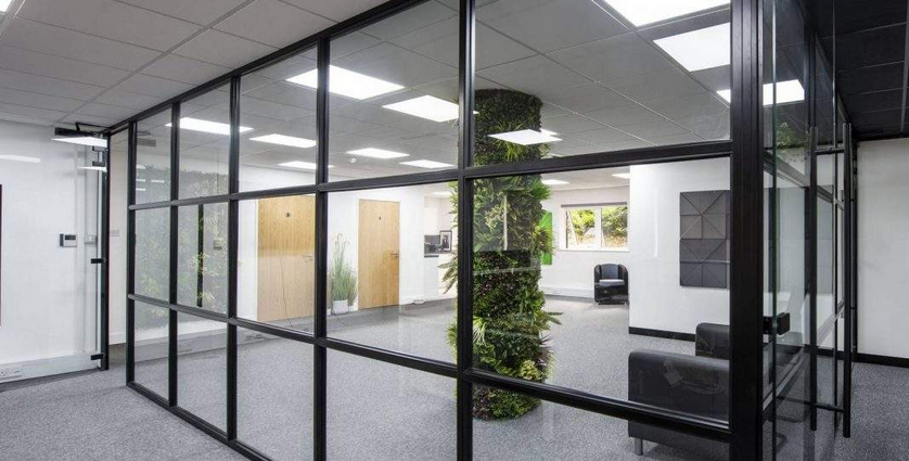 Glazed office walls help reduce the noise between rooms and can provide private areas, meeting and board rooms.