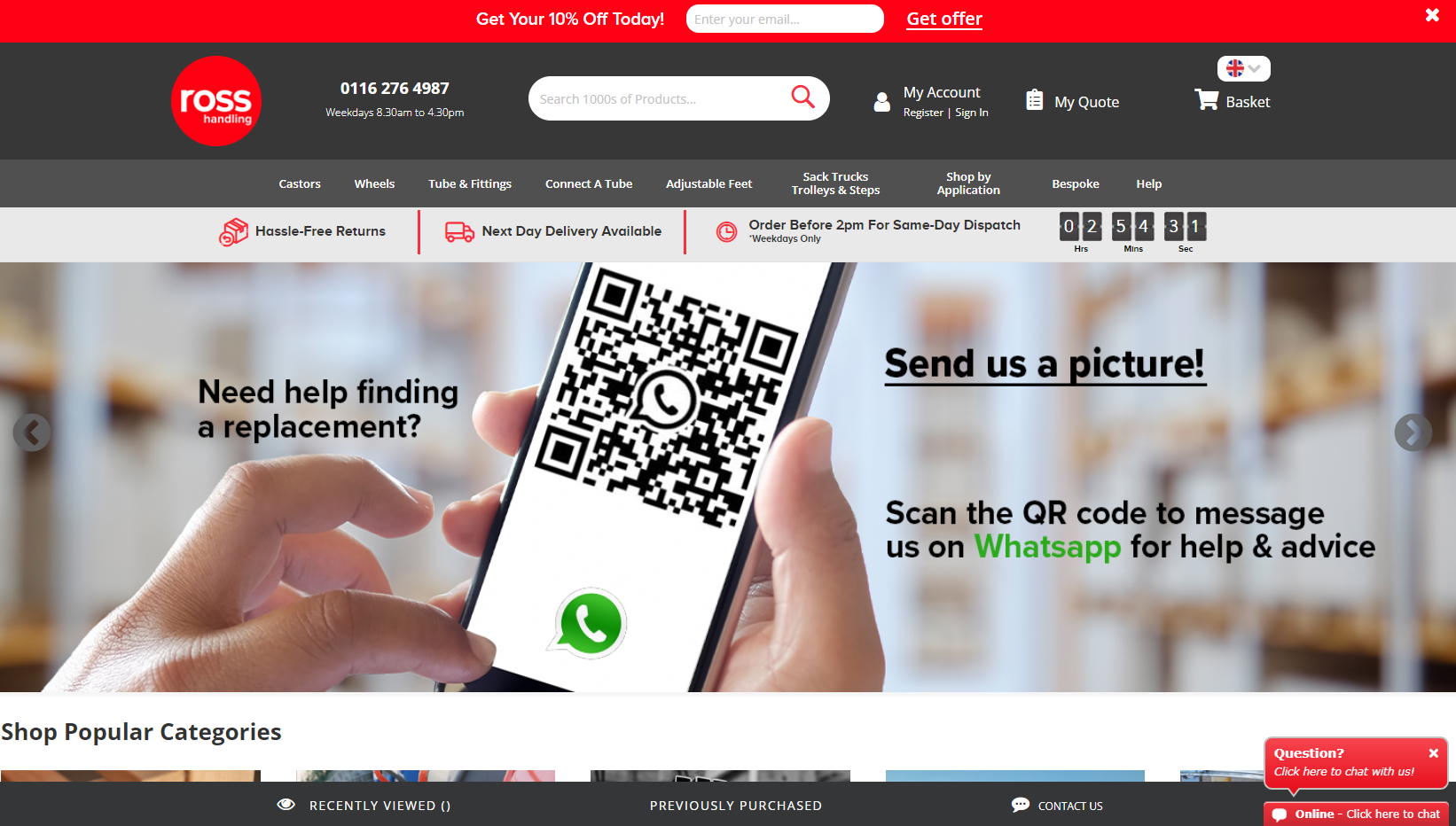 Ross Castors deal with the manufacturing, stocking and selling of Ross branded Castors, Wheels, Handgrips, Handwheels and Tube end Fittings. With over 30 years experience in the field, we are the best people to talk to about Castors & Wheels.