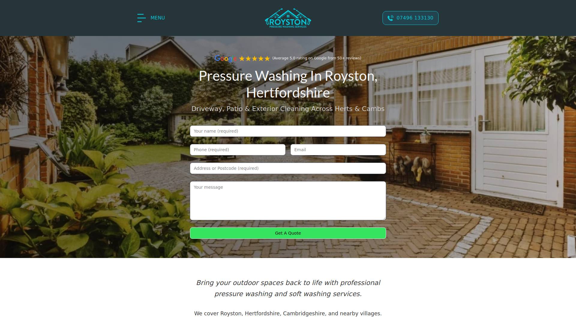 At Royston Pressure Washing Services, we’re proud to be your local exterior cleaning specialists, offering professional pressure washing and soft washing across Royston, Hertfordshire, Cambridgeshire, and surrounding villages. Whether you need your driveway deep cleaned, patio restored, or render soft washed, we’re here to help bring your outdoor surfaces back to life. We’re a small, dedicated team with a big focus on quality results and customer satisfaction. Our business is built on trust, reliability, and a passion for transforming properties with the power of professional cleaning. No job is too big or too small — and every job gets the same attention to detail.