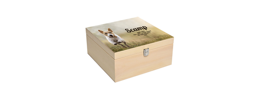 Personalised Luxury Square Wood Pet Ashes Casket Memory Box with Full Printed Photograph