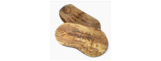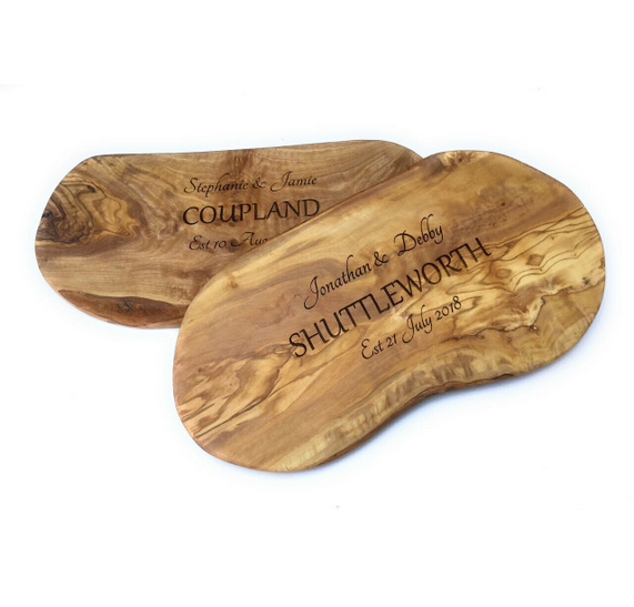 Personalised with a names and with a message of your choosing on to the cheese board.