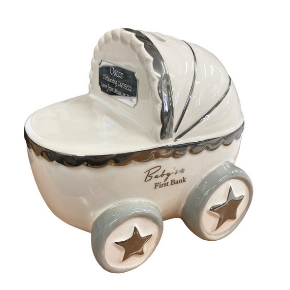 This beautifully created money box is full of lots of detail and features a star on every wheel.