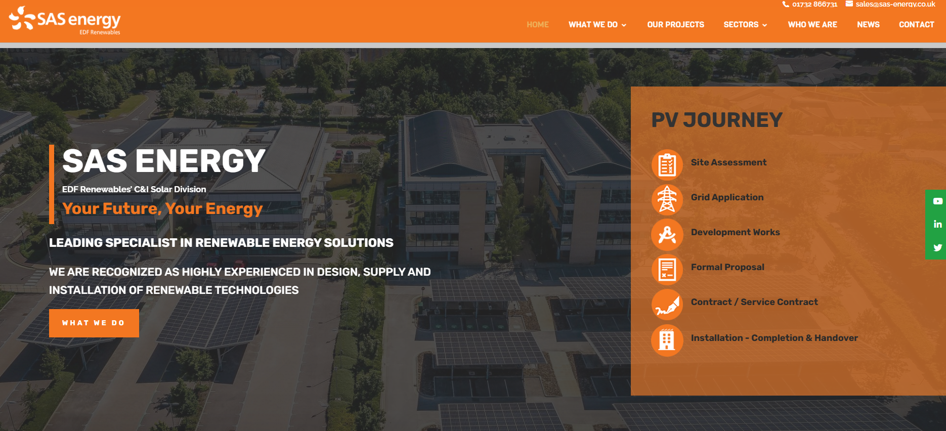From January 2017, SAS ENERGY is the new name for Solar Advanced Systems. The name change was required to reflect the increased work and options within the company portfolio. Energies such as Electric Vehicle recharging, Battery Storage and LED Lighting. These renewable energies are now integral parts of our capabilities and sit side by side with solar.