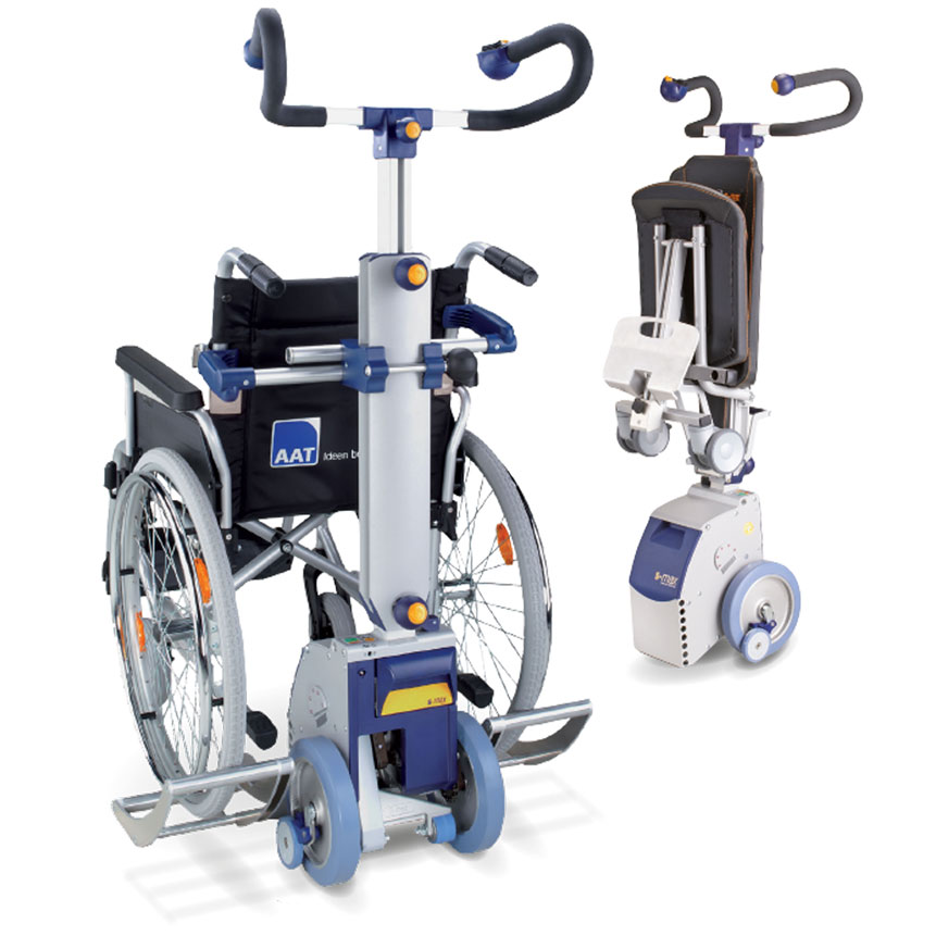 Stair climbing function providing disabled access at home, work, school and out and about. The care attendant needs little physical power to handle the C-Max stair climber.