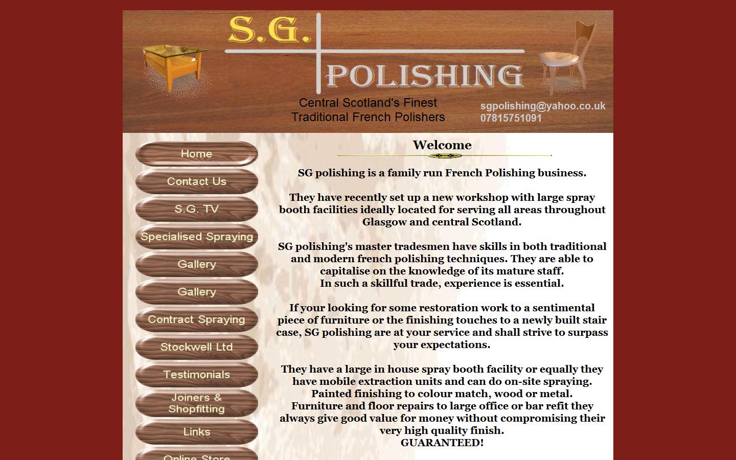 SG polishing is a family run French Polishing business based in Cumbernauld, Glasgow. Covering all areas throughout central Scotland. SG polishing's master tradesmen have skills in both traditional and modern french polishing techniques. They are able to capitalise on the knowledge of its mature staff. In such a skillful trade, experience is essential. If your looking for some restoration work to a sentimental piece of furniture or the finishing touches to a newly built stair case, SG polishing are at your service and shall strive to surpass your expectations. They have a large in house spray booth facility or equally they can do on site spraying. Painted finishing to colour match, wood or metal. Small furniture/floor repairs to large office refit they always give value for money without compromising their very high quality finish.GUARANTEED! SG polishing was established in 2000 by proprietor Steven Gannon, and has earned a strong reputation due to their reliable quality service. Their work involves all aspects of shop fitting finishes, bars, restaurants, clubs, hotels, offices and homes. Please contact a member of the SG Polishing team for a free estimate. All jobs large and small will be catered for and customer satisfaction is the prime objective.