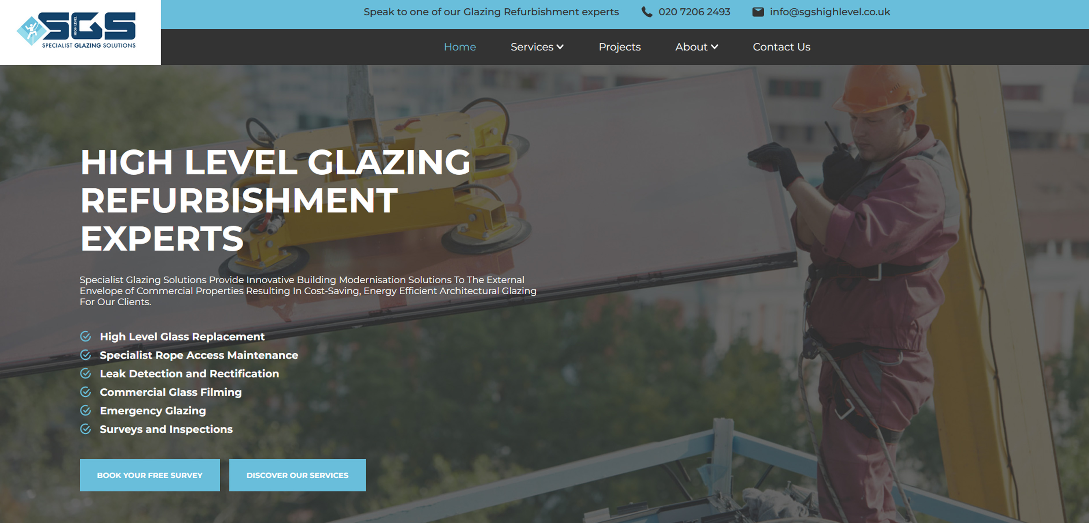 Here at SGS, we employ a team of experienced glazers as well as skilled rope access technicians who are able to tailor each solution to the specific needs of our clients. Our detailed inspection reports are designed to cover all health and safety issues, and there is no need for scaffolding when it comes to our bespoke access solutions. Some of our high level access combinations include rope glass replacement access, crane glass replacement access, manlift glass replacement access, spider glass replacement access, robotic lifting glass replacement access, scissor lift glass replacement access, winch glass replacement access, power sucker glass replacement access and more.
