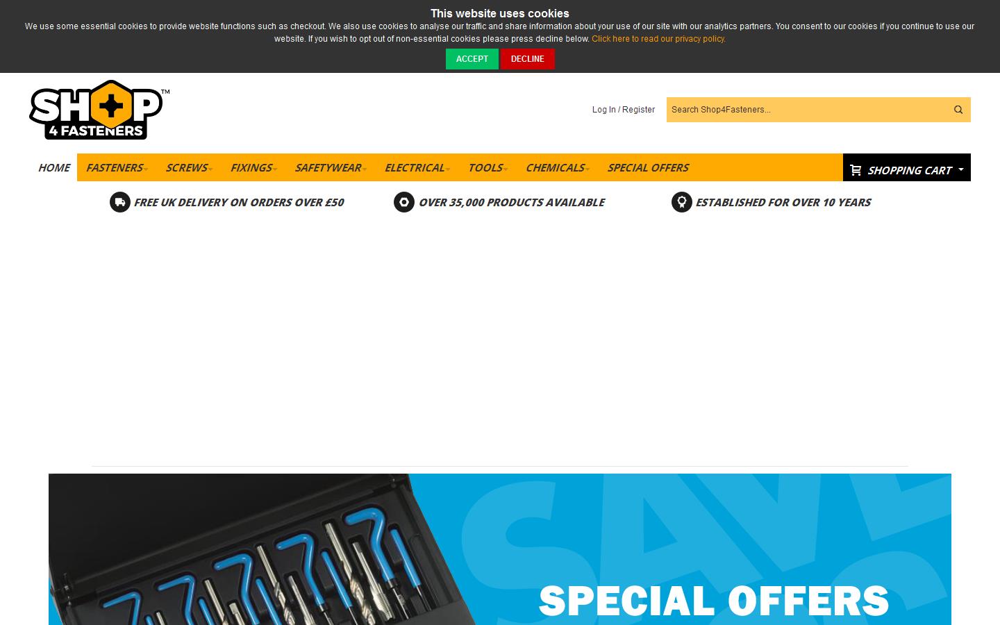 Shop4Fasteners are are specialists in fasteners and fixings for the engineering, construction and fabrication industry. Metric and imperial fasteners are available in a large range of materials - mild steel, stainless steel, brass, plastic and aluminium. No one has a more extensive range of fixings and fasteners.