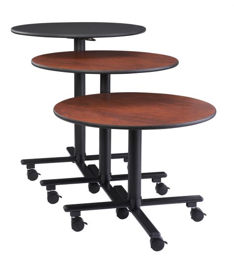 The Communicator is a stylish 12 seater mobile, folding table seating unit designed to maximize capacity and visibility of all table diners to each other. The Graduate can be used to help take advantage of and give interest to the space design of a school dining hall.