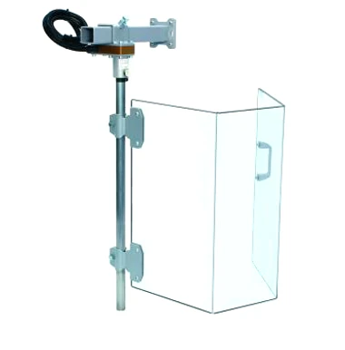 A free standing adjustable safety shield mounted on 50mm castors (swivel and braked).