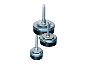 Highly effective damping stems from the solid base consisting of a galvanised steel cover plate and a flexible body which is moulded in acid oil, heat and age resistant chloroprene material which is suitable for any solid floor.