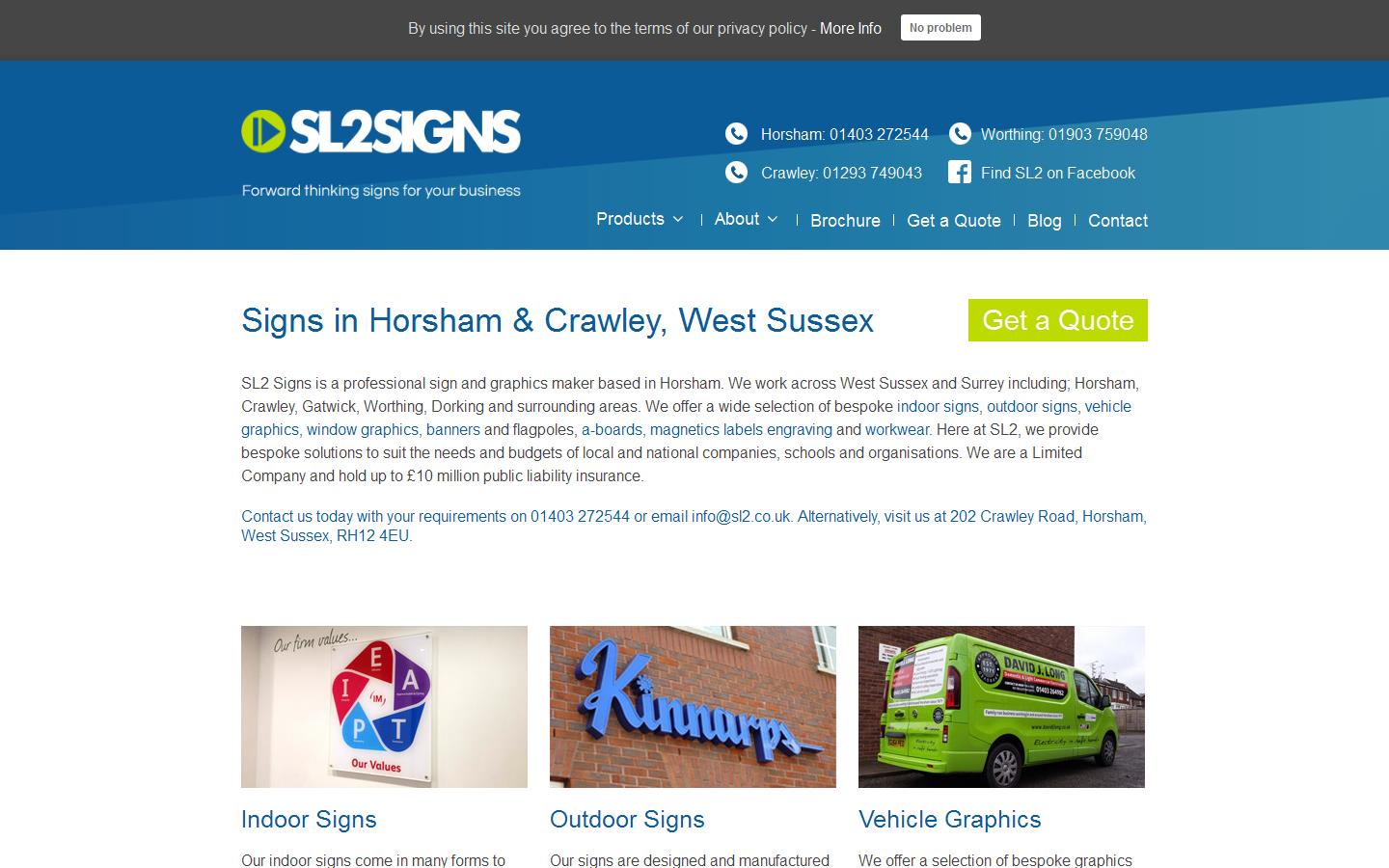 SL2 Signs and Graphics Ltd provide a range of signs and graphics across West Sussex. They have offices in Horsham, Worthing and Lancing. Some products they offer include outdoor signs, indoor signs, vehicle graphics, window graphics, roller banners, pavement signs, stickers, magnetics and work clothing.