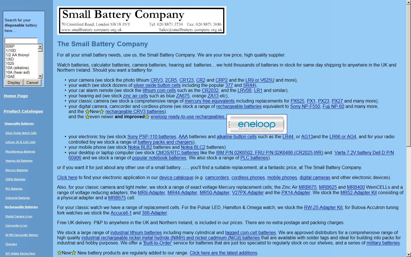 The Small Battery Company is the London, UK based distributor and retailer of battery products, specialising in rare and obsolete batteries and supplying products across Europe and the world.