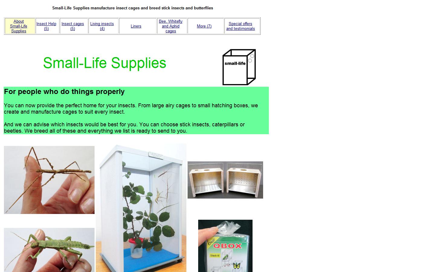 Small-Life Supplies designs and manufactures cages for insects and insect enclosures. Examples include bee study cages, aphid clip cages, fly cages, stick insect cages and insect olfactometers. Choose from our standard range or contact us if you would like us to design and manufacture bespoke insect cages for you. We also design and manufacture plant growth chambers and cabinets.