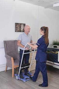 Note: Patients must be carefully assessed prior to using this device and have good functional sitting and standing balance with the ability to transfer weight through both legs while standing.