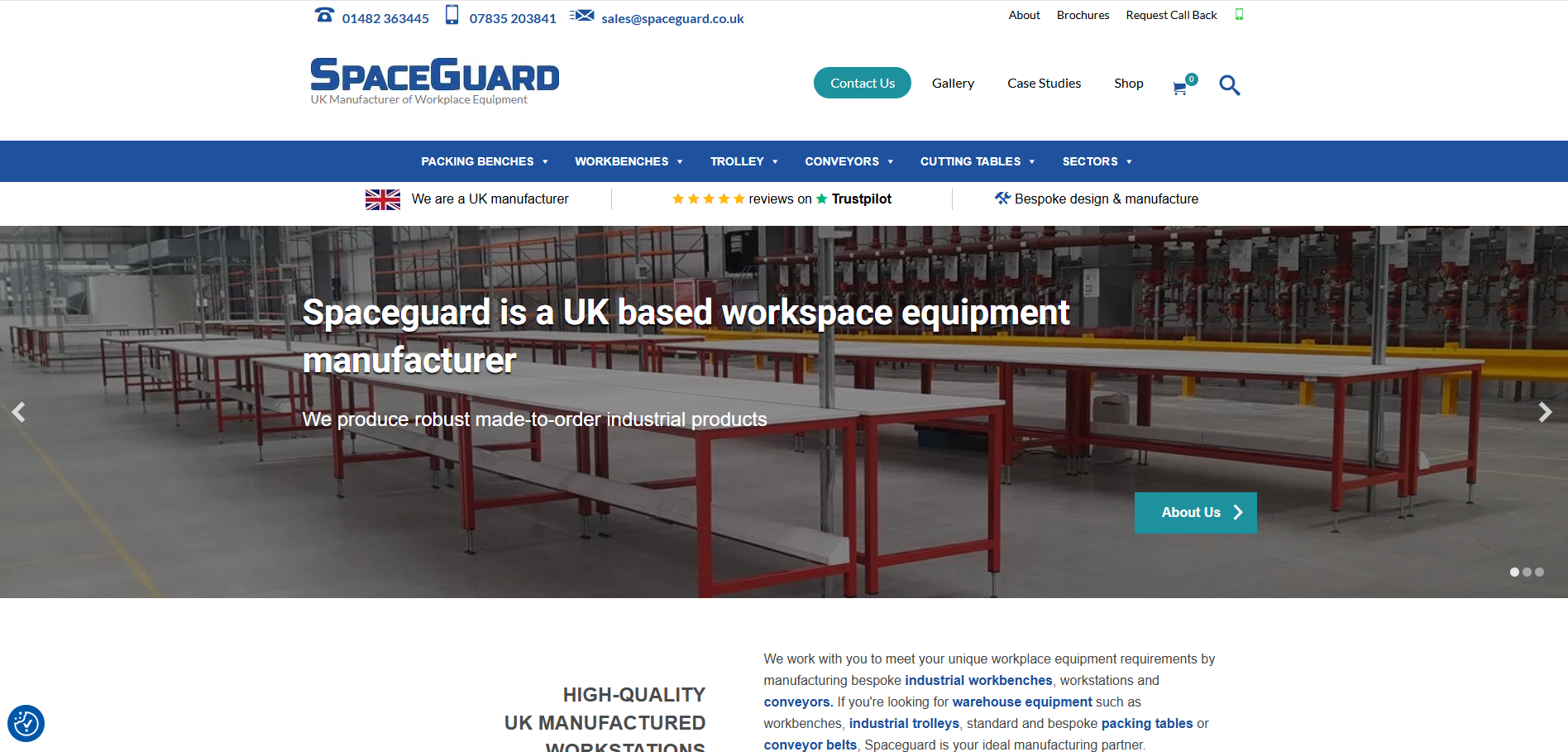 Spaceguard is a UK based workspace equipment manufacturer. Spaceguard manufactures bespoke industrial workbenches, workstations and conveyors. If you're looking for warehouse equipment such as workbenches, industrial trolleys, standard and bespoke packing tables or conveyor belts, Spaceguard is your ideal manufacturing partner.