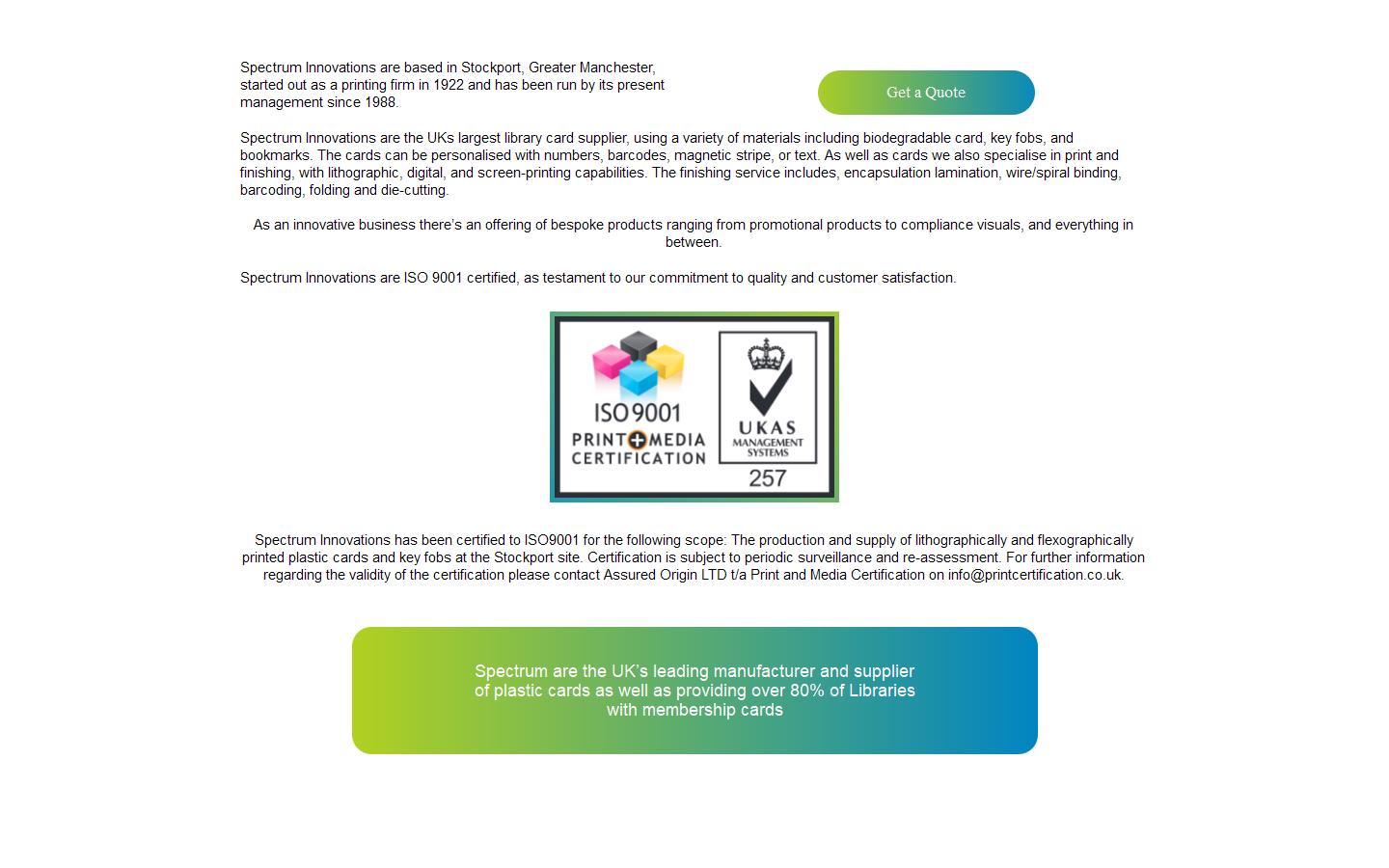 Spectrum Innovations are based in Stockport, Greater Manchester, started out as a printing firm in 1922 and has been run by its present management since 1988.