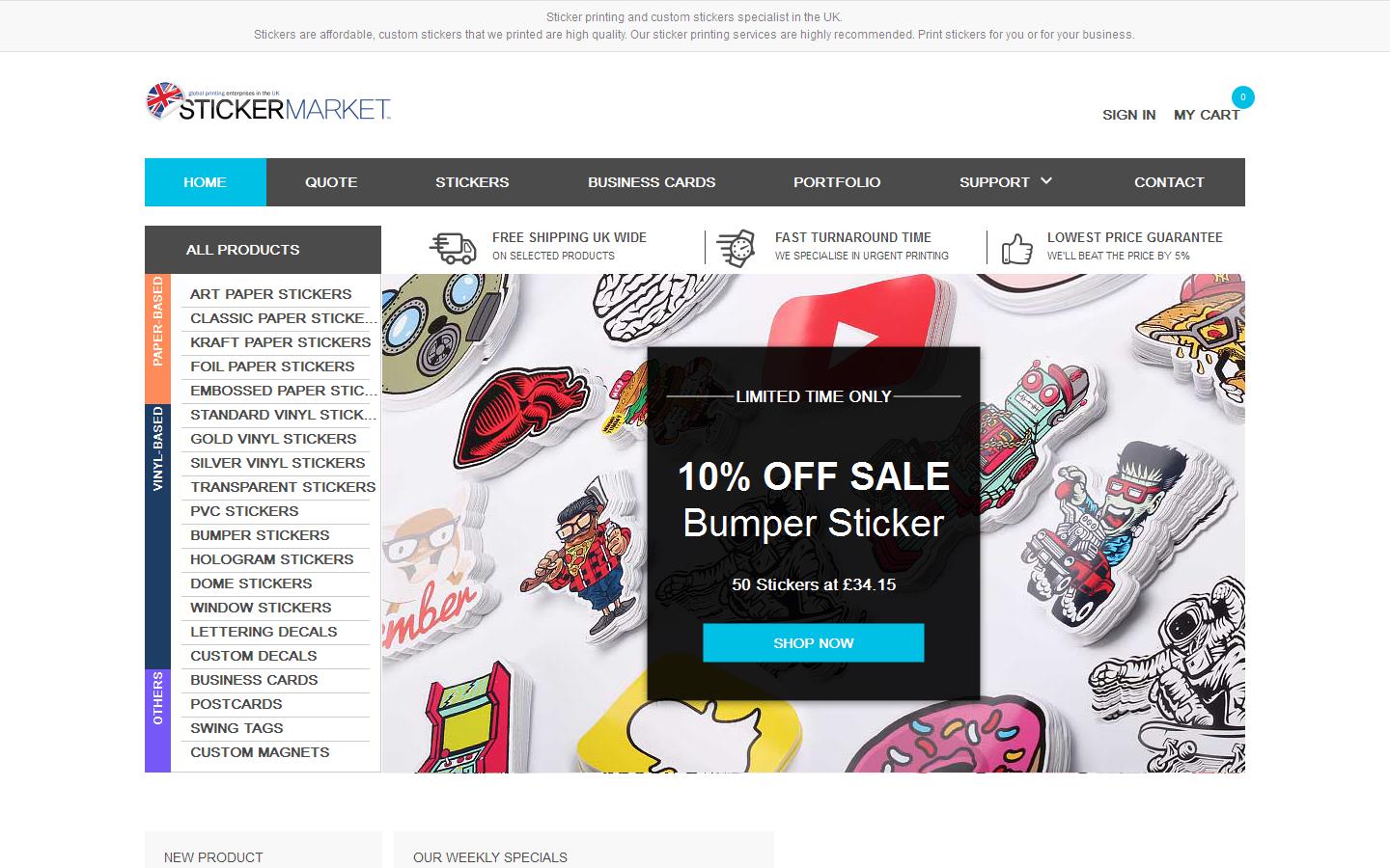 StickerMarket is one of the UK’s top cheapest online custom sticker printing company. Our custom stickers and labels are made from the top of the lined paper or vinyl materials and adhesives. We aim to offer exceptional service to enhance your advertisement with your brands, products, and services. Guaranteed a fast turnaround time for free delivery.