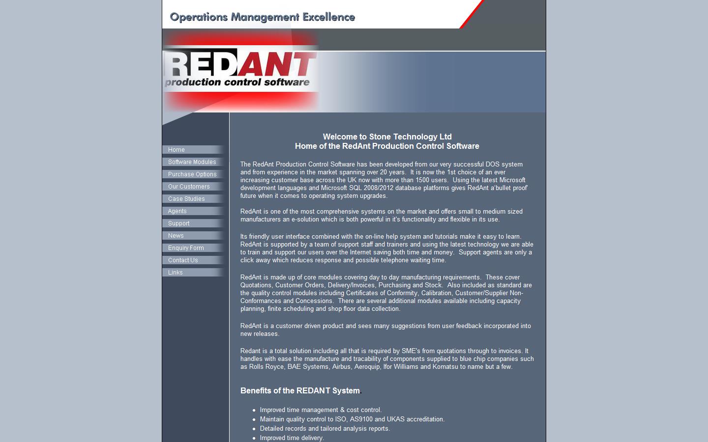 Redant is a total solution including all that is required by SME''s from quotations through to invoices. It handles with ease the manufacture and tracability of components supplied to blue chip companies such as Rolls Royce, BAE Systems, Airbus, Aeroquip, Ifor Williams and Komatsu to name but a few.