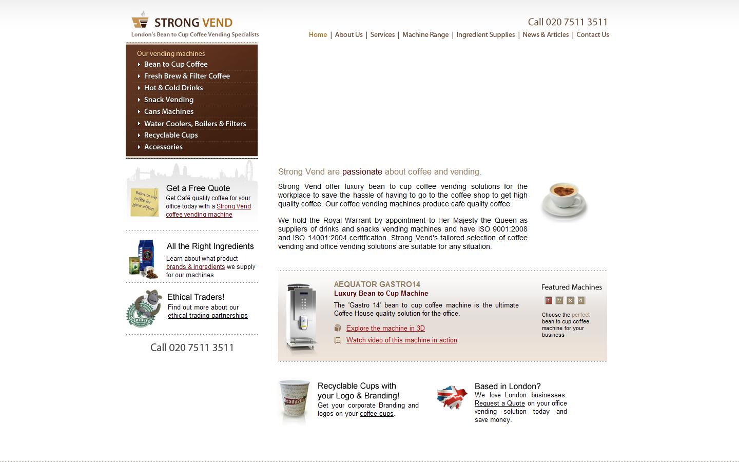 Strong Vend are Bean to Cup Coffee Vending Specialists based in London. We stock a wide range of vending machines including Bean to Cup Coffee Machines, Fresh Brew & Filter Coffee Vending, Snack Vending, Cans Machines and Water Coolers, Filters and Boilers.