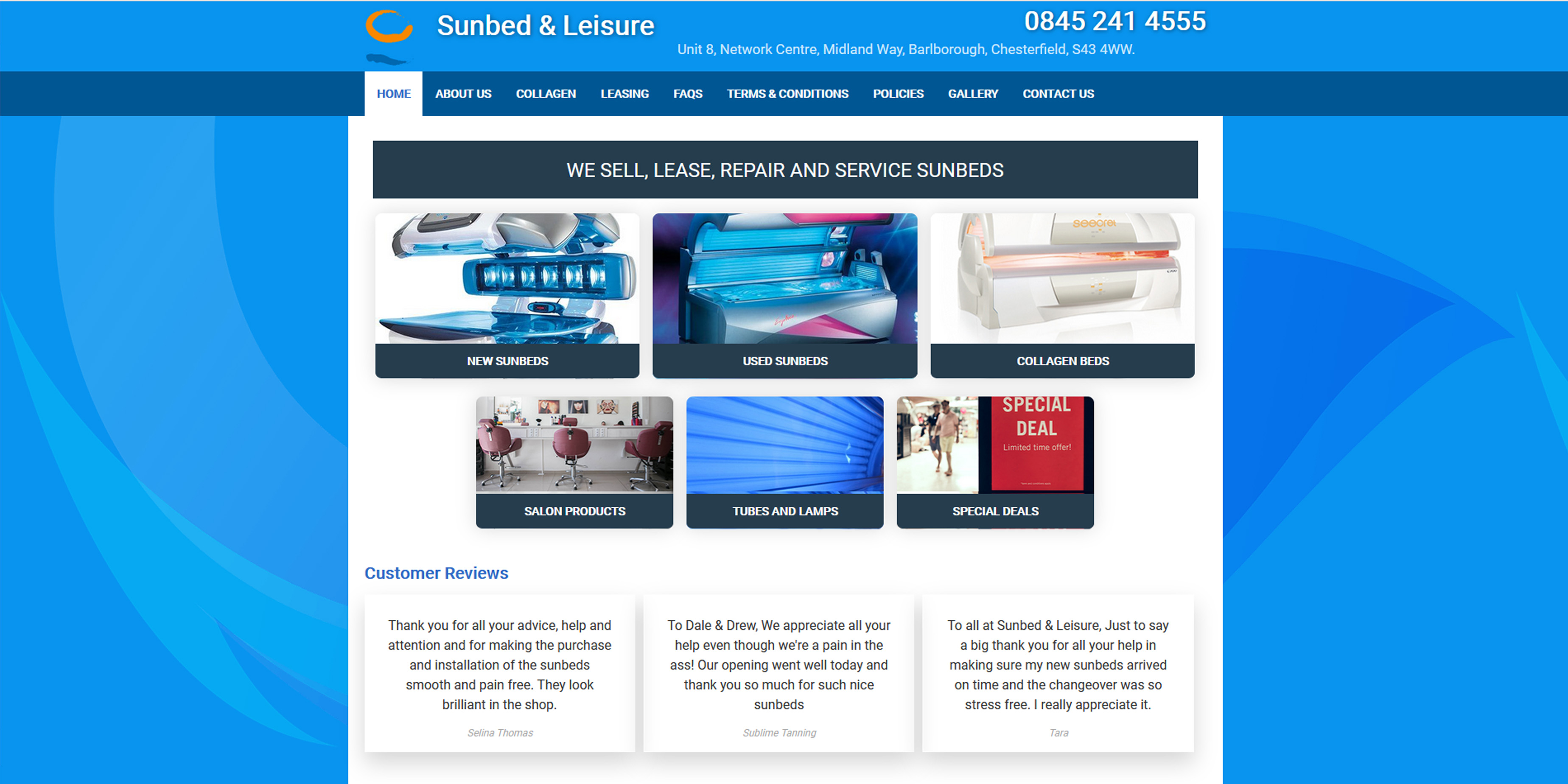 Based in Chesterfield, our company is a trading style of Tecnosole Sales UK Ltd, offering a fully reconditioned range of Ergoline sunbeds alongside the full range of Tecnosole vertical units. Our main goal as a company is to provide customers with high quality, top name sunbeds that are affordable and long-lasting. Some of the brands we offer include KBL, Hapro, Alisun and Ultrasun.
