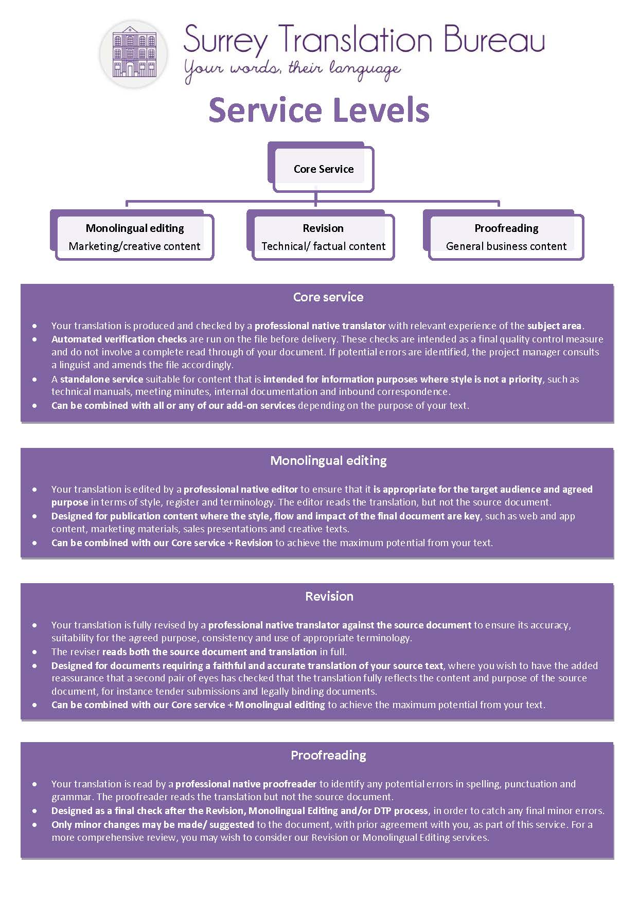 Monolingual Editing: Designed for publication content where style, flow and impact of th efinal document are key eg Website, Marketing Materials