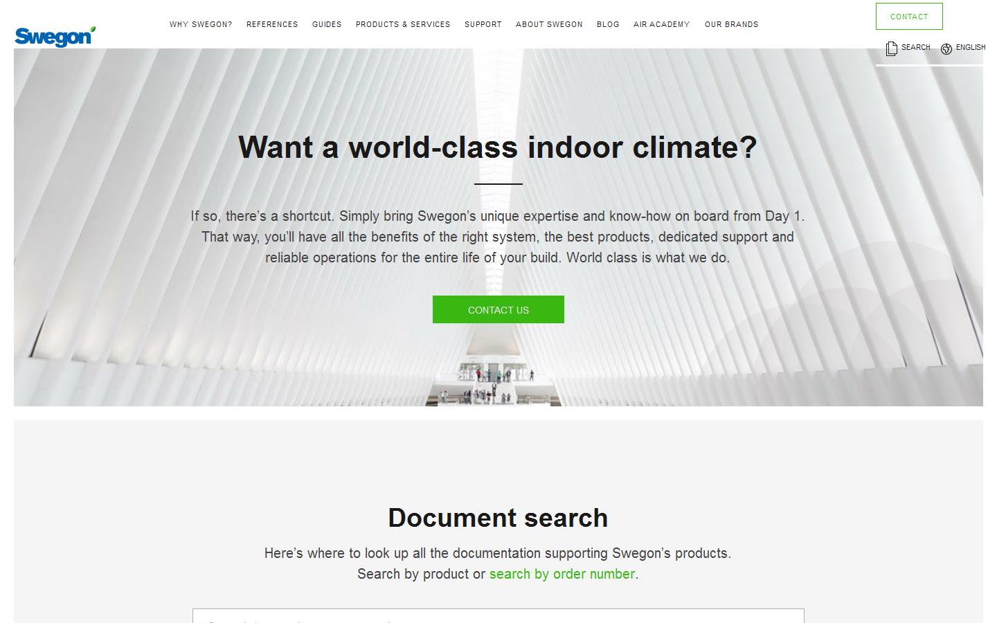 Swegon Ltd are specialists in air handling units, air diffusers, home ventilation, chillers, heat pumps and climate control systems.