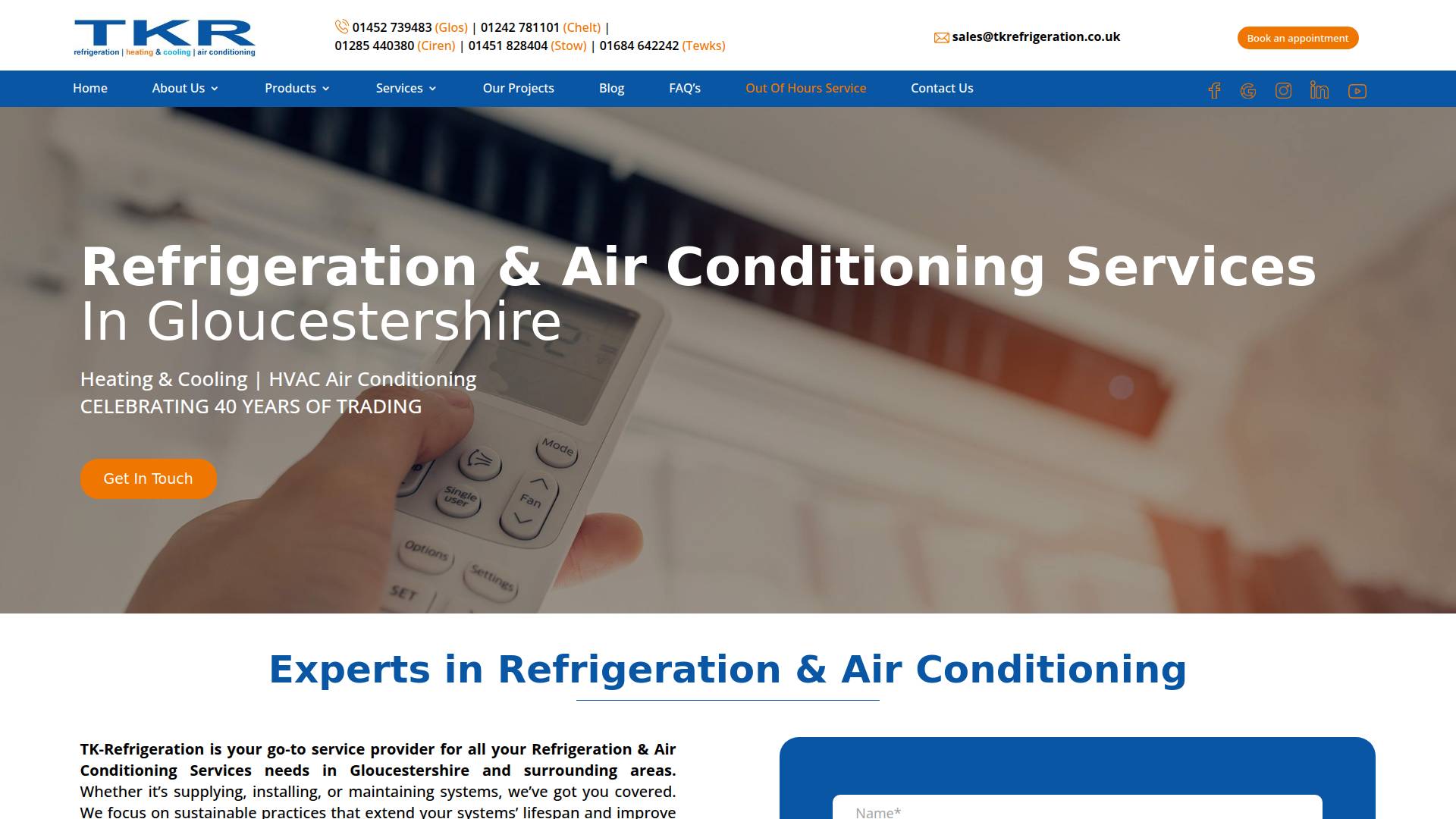 TK Refrigeration are a Gloucestershire based refrigeration and air-conditioning company. TKR have over 40 years of experience in the field and are the go-to experts in Gloucestershire when it comes to Heat pump installations for both domestic settings and commercial. We also supply regular maintenance to meet your requirements – regular service calls, one off ‘deep cleans’ and emergency repairs.