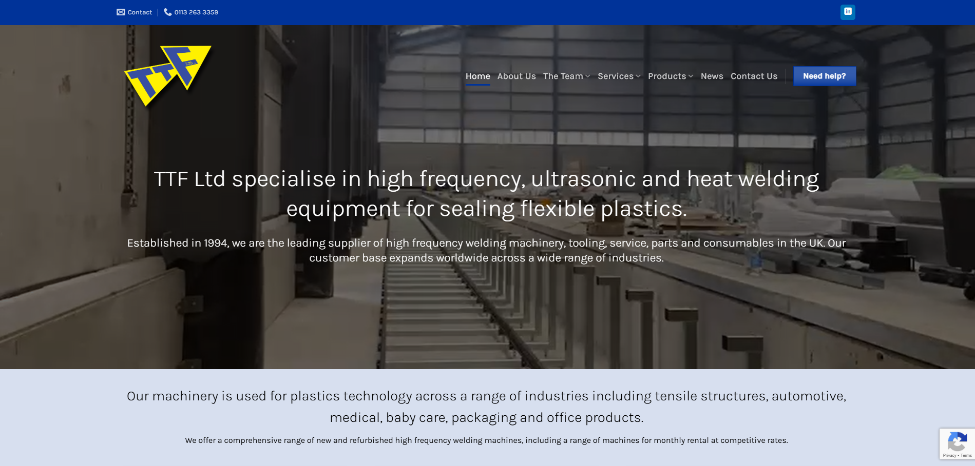 TTF Ltd specialise in high frequency, ultrasonic and heat welding equipment for sealing flexible plastics.